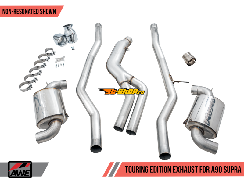AWE 2020 Toyota Supra A90 Non-Resonated Touring Edition Exhaust - 5in Chrome Silver Tips