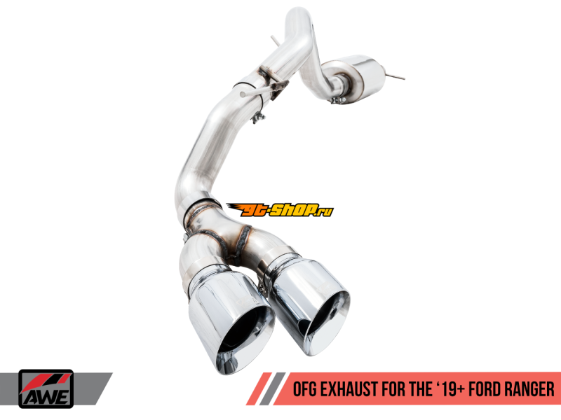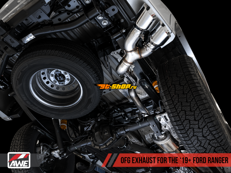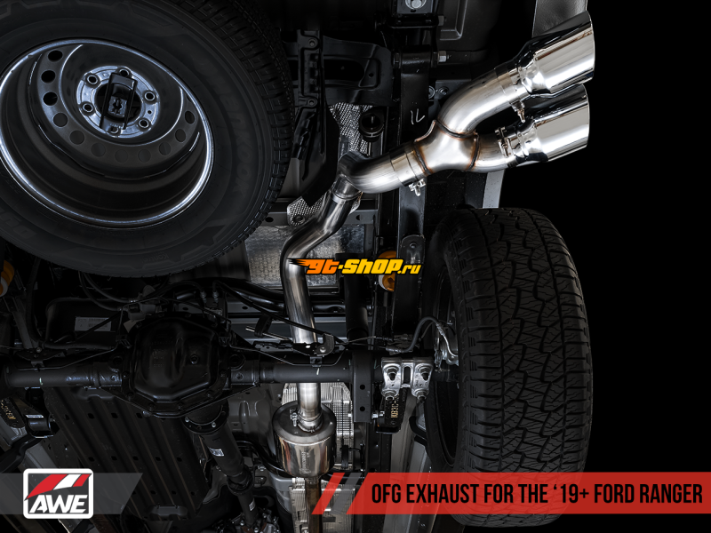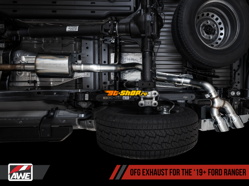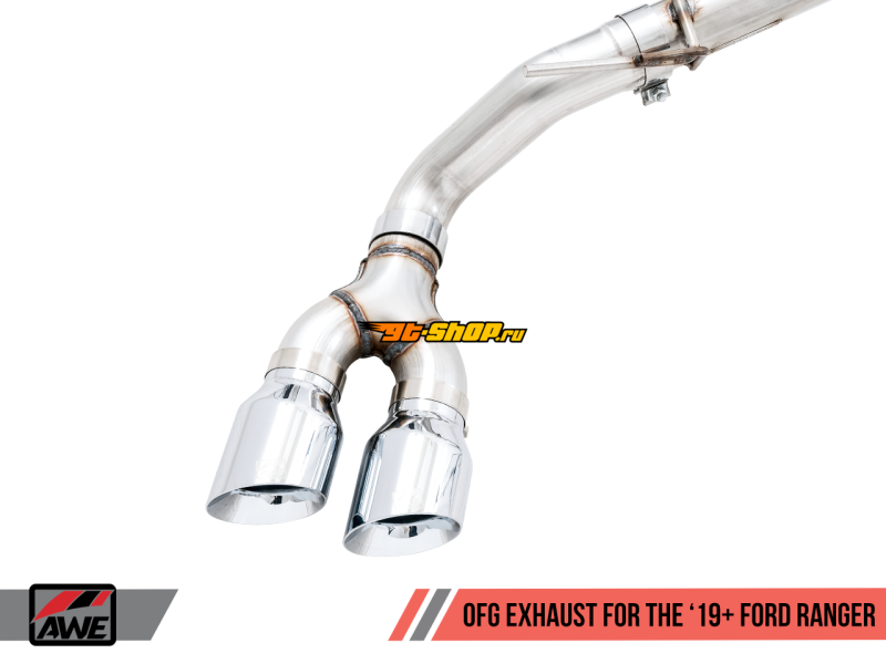 AWE Tuning 2019+ Ford Ranger 0FG Performance Exhaust System w/Chrome Silver Tips & Bash Guard