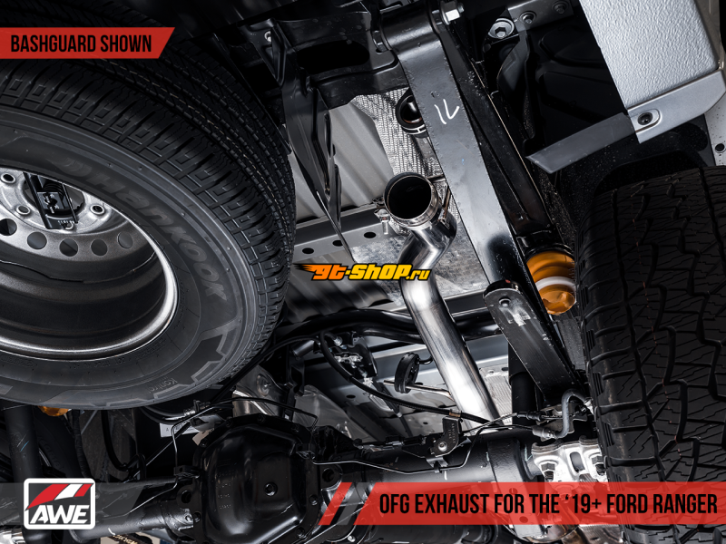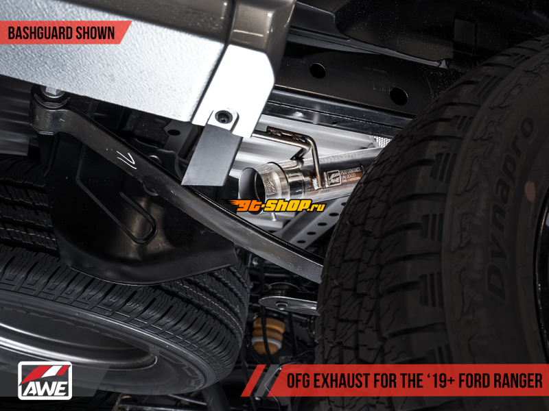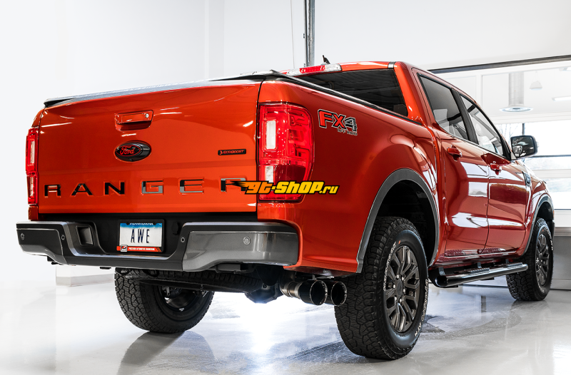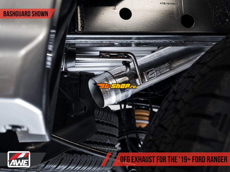 AWE Tuning 2019+ Ford Ranger 0FG Performance Exhaust System w/Diamond Black Tips & Rock Guard
