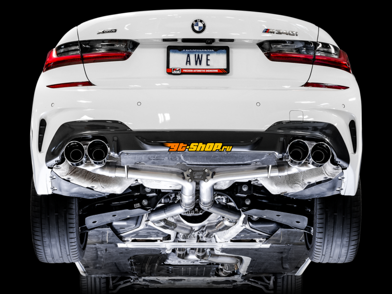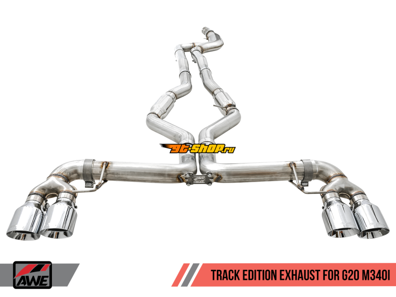 AWE Tuning 2019+ BMW M340i (G20) Track Edition Exhaust - Quad Chrome Silver Tips