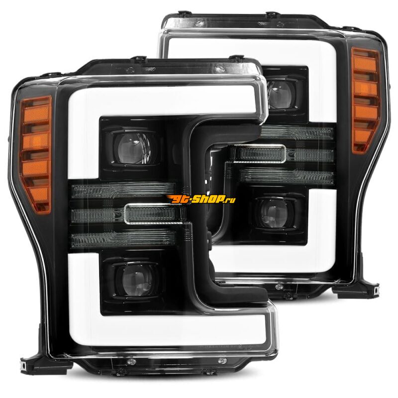 AlphaRex 17-19 Ford F-250 SD PRO-Series Proj Headlights Plank Style Black w/Activ Light/Seq Signal