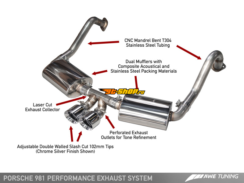 AWE Tuning Porsche 981 Performance Exhaust System - w/Chrome Silver Tips