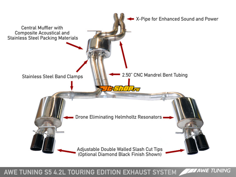 AWE Tuning Audi B8 S5 4.2L Touring Edition Exhaust System - Diamond Black Tips