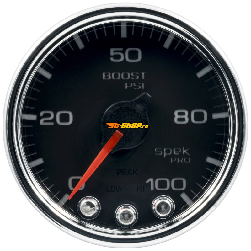 Autometer Spek-Pro Gauge Boost 2 1/16in 100psi Stepper Motor W/Peak & Warn Blk/Chrm