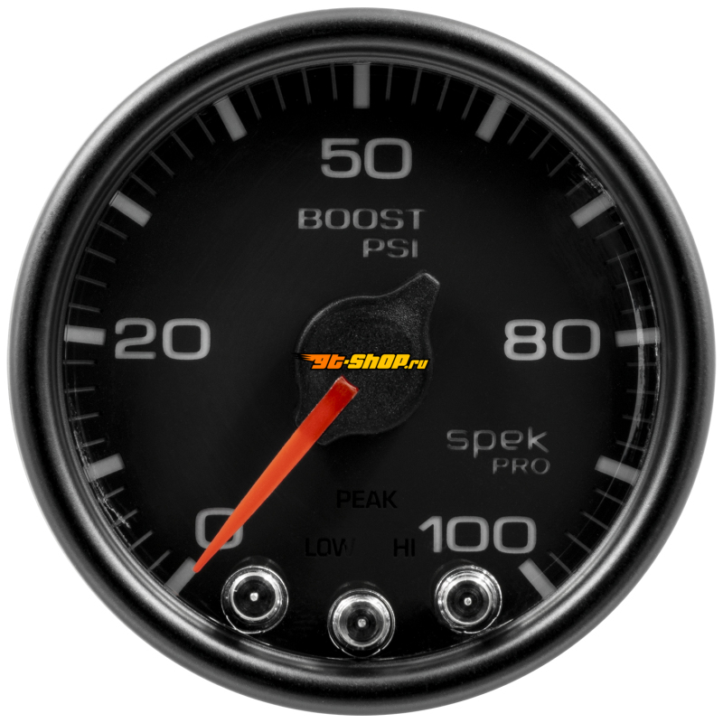 Autometer Spek-Pro Gauge Boost 2 1/16in 100psi Stepper Motor W/Peak & Warn Blk/Blk