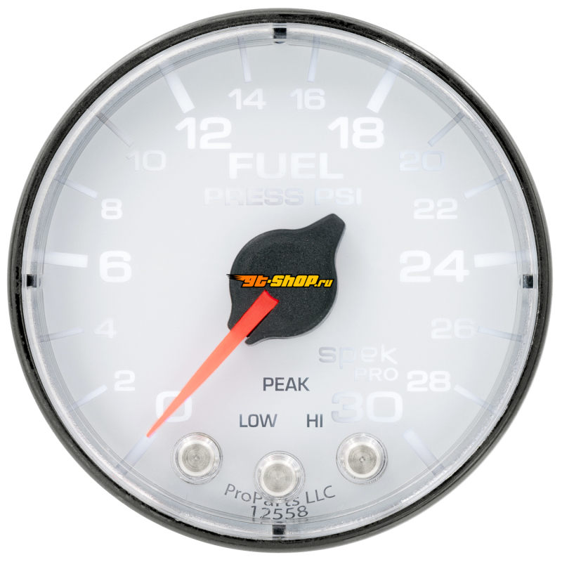 Autometer Spek-Pro Gauge Fuel Press 2 1/16in 30psi Stepper Motor W/Peak & Warn Wht/Blk