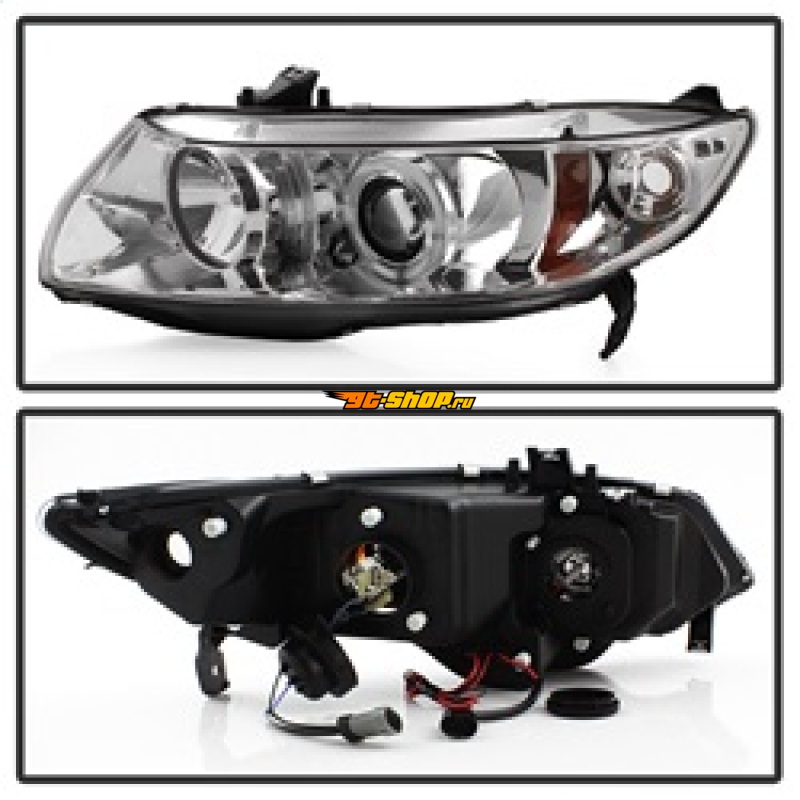 Spyder Honda Civic 06-08 2Dr Projector Headlights LED Halo Chrome High H1 Low H1 PRO-YD-HC06-2D-HL-C