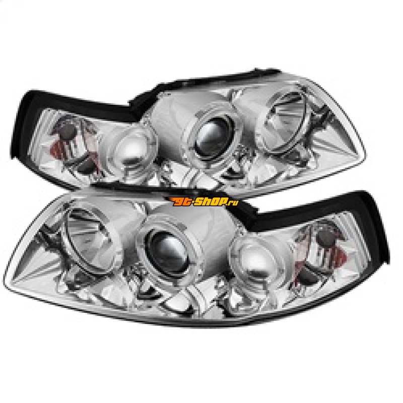 Spyder Ford Mustang 99-04 Projector Headlights LED Halo Chrome High H1 Low H1 PRO-YD-FM99-1PC-AM-C