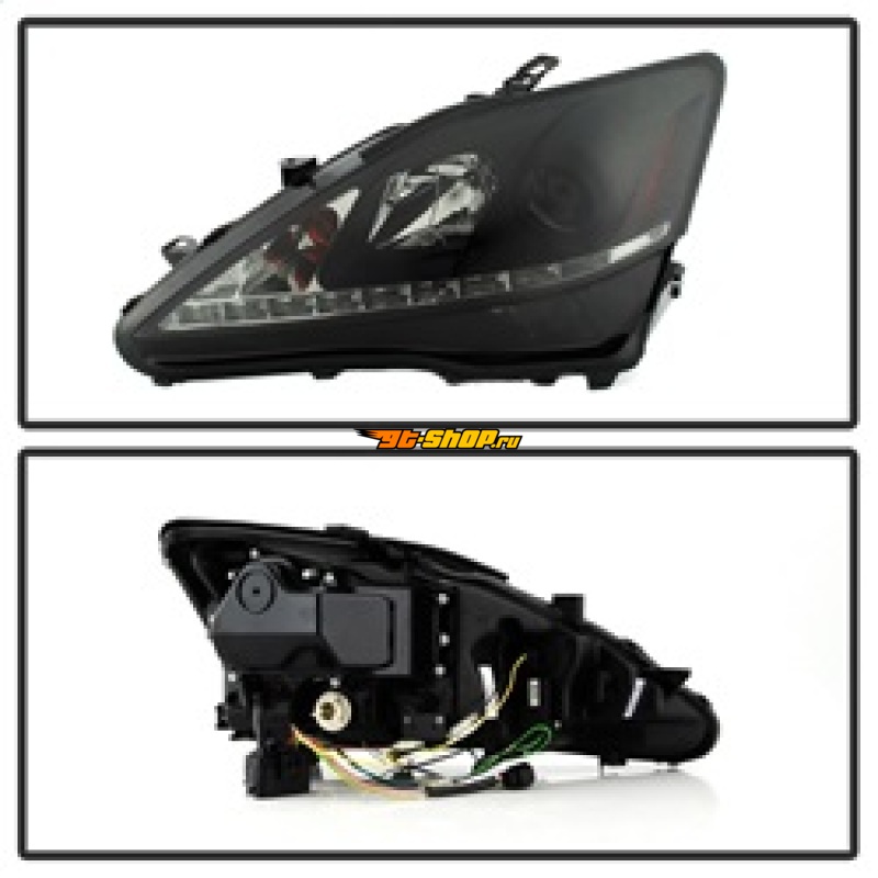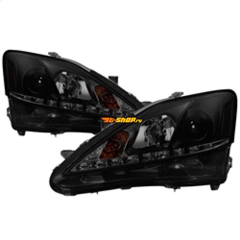 Spyder Lexus IS 250/350 2006-2010 Projector Headlights DRL Black Smoke PRO-YD-LIS06-DRL-BSM