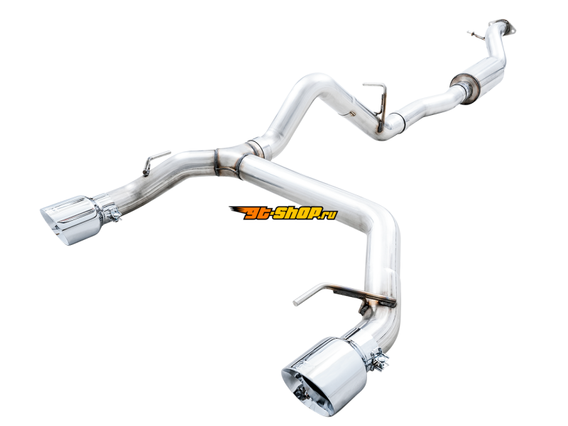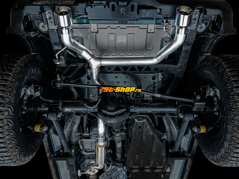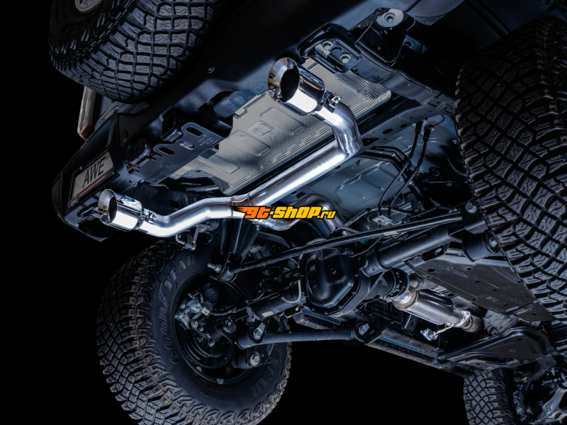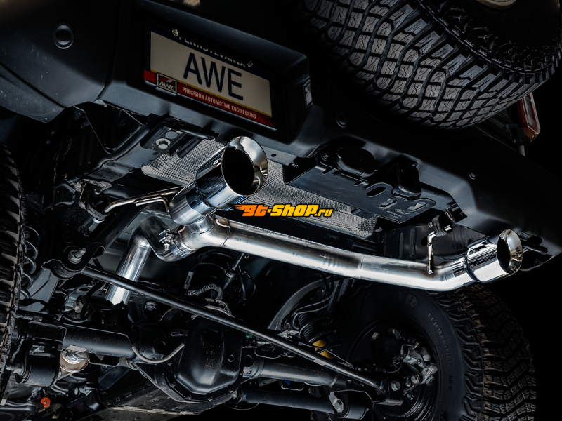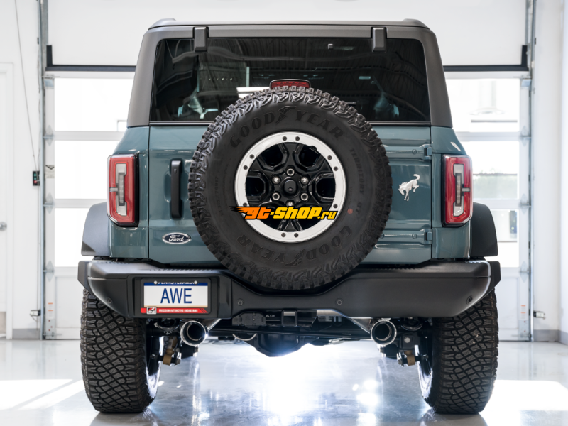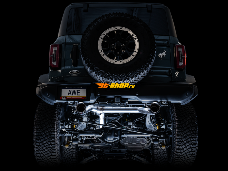 AWE Tuning 2021+ Ford Bronco 0FG Dual Rear Exit Exhaust w/Chrome Silver Tips & Bash Guard