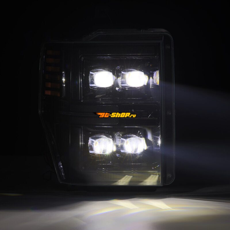 AlphaRex 08-10 Ford F250-550 NOVA-Series LED Projector Headlights Alpha-Blk w/Activ Light/Seq Signal