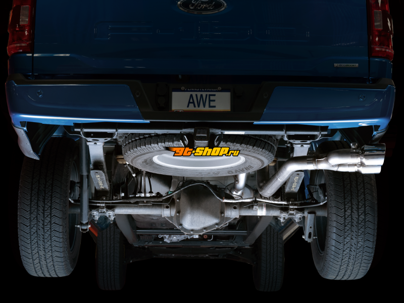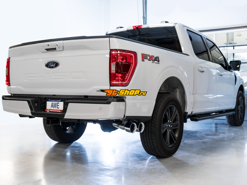AWE 0FG 21+ Ford F150 Dual Side Exit Cat-Back Exhaust- 4.5in Chrome Silver Tips