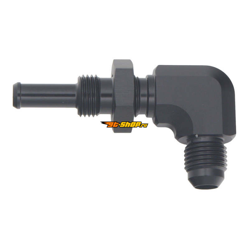 DeatschWerks 6AN Male Flare to 5/16in Male Barb Bulkhead Adapter 90-Degree - Anodized Matte Black