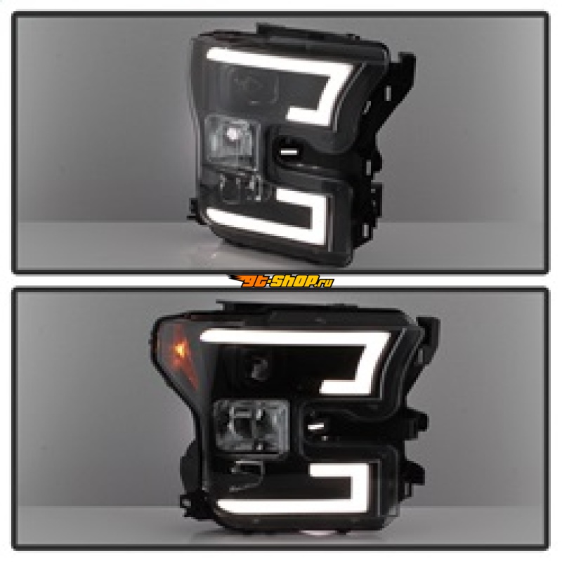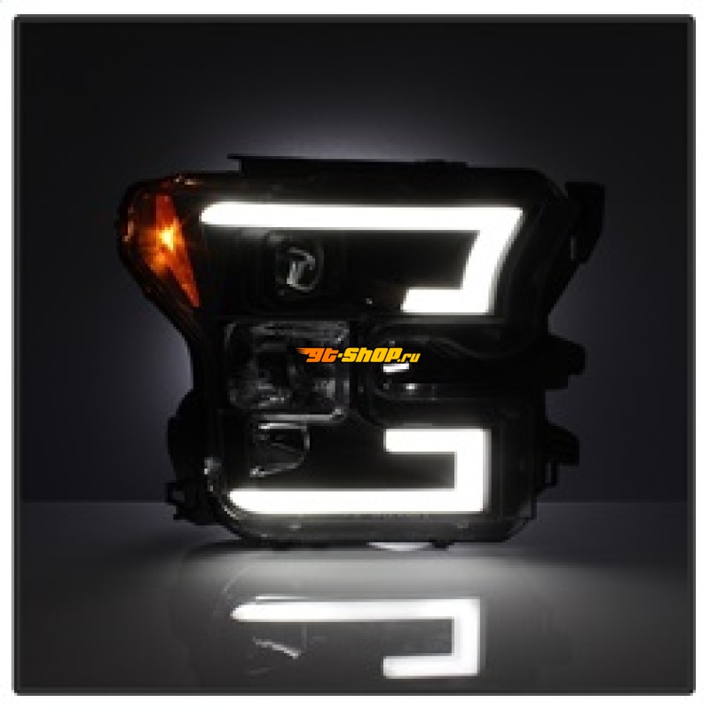 Spyder Ford F150 2015-2017 Projector Headlights - Light Bar DRL LED - Black PRO-YD-FF15015-LBDRL-BK