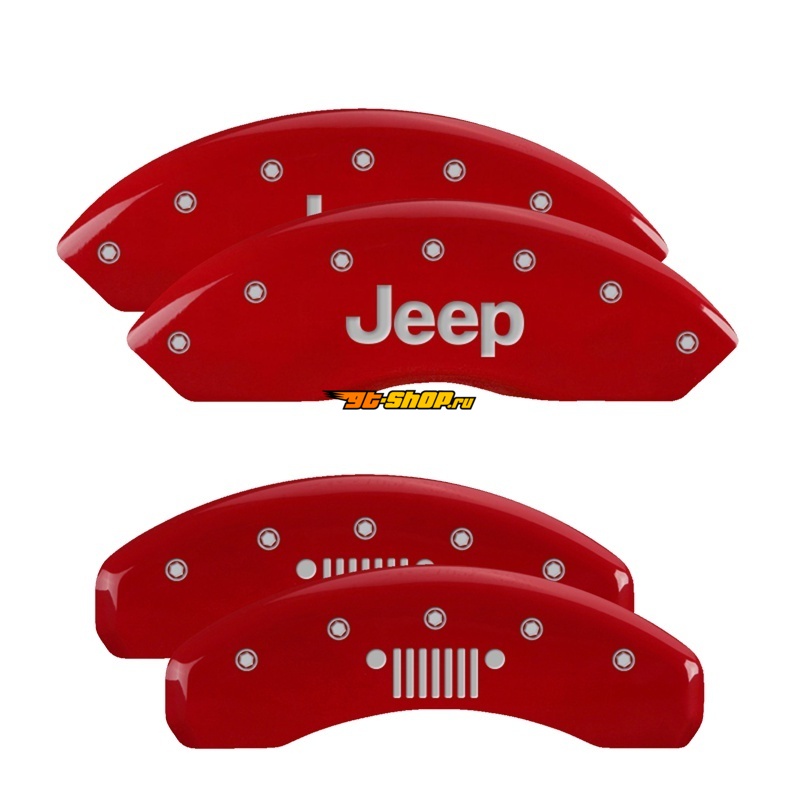 MGP 4 Caliper Covers Engraved Front JEEP Engraved Rear JEEP Grill logo Red finish silver ch