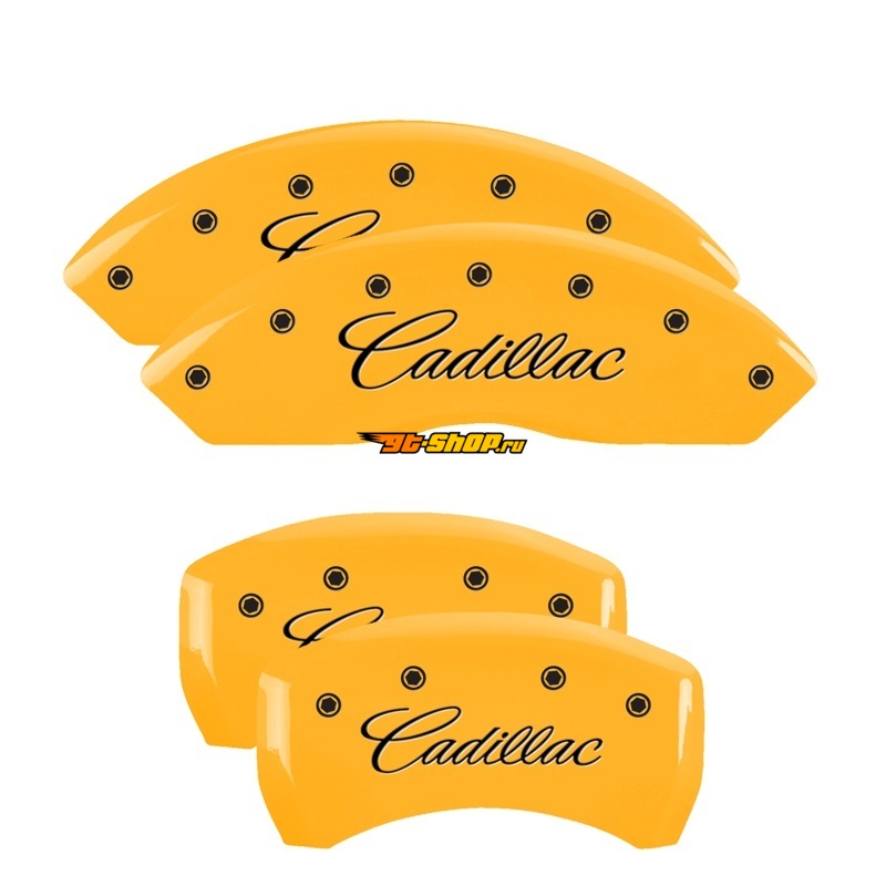 MGP 4 Caliper Covers Engraved Front Cursive/Cadillac Engraved Rear CTS Yellow finish black ch