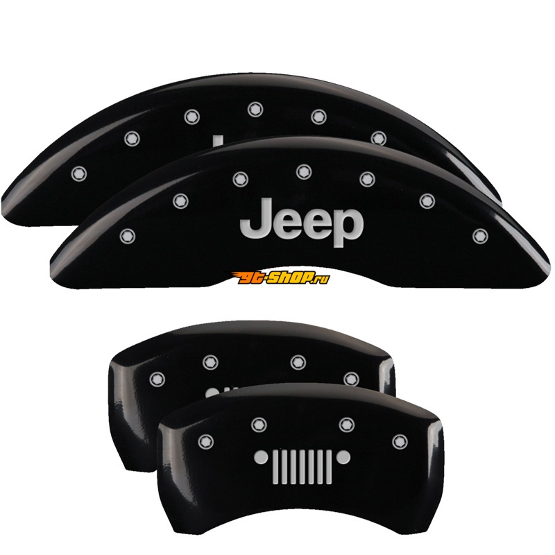 MGP 4 Caliper Covers Engraved Front JEEP Engraved Rear JEEP Grill logo Black finish silver ch