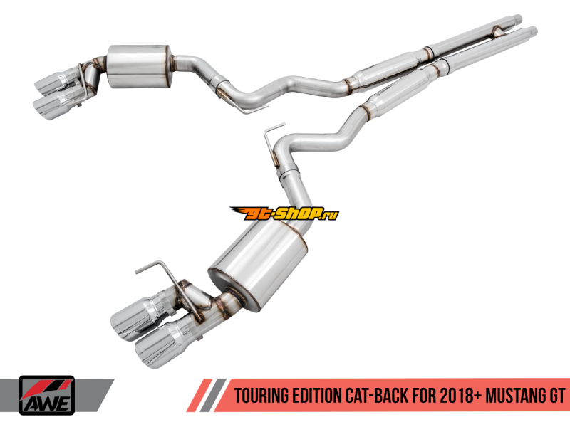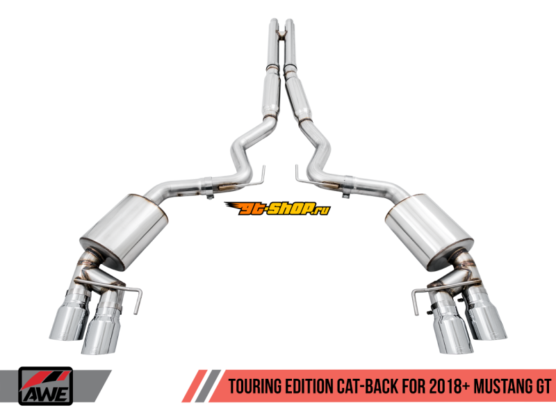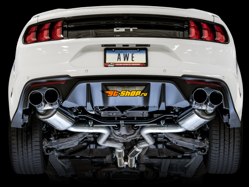 AWE Tuning 2018+ Ford Mustang GT (S550) Cat-back Exhaust - Touring Edition (Quad Chrome Silver Tips)