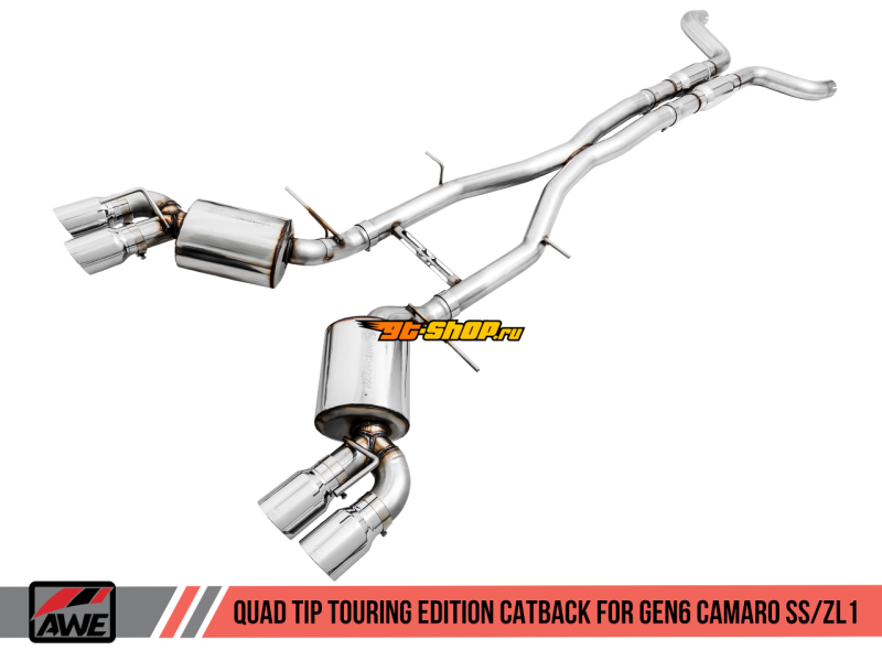 AWE Tuning 16-19 Chevy Camaro SS Non-Res Cat-Back Exhaust -Touring Edition (Quad Chrome Silver Tips)