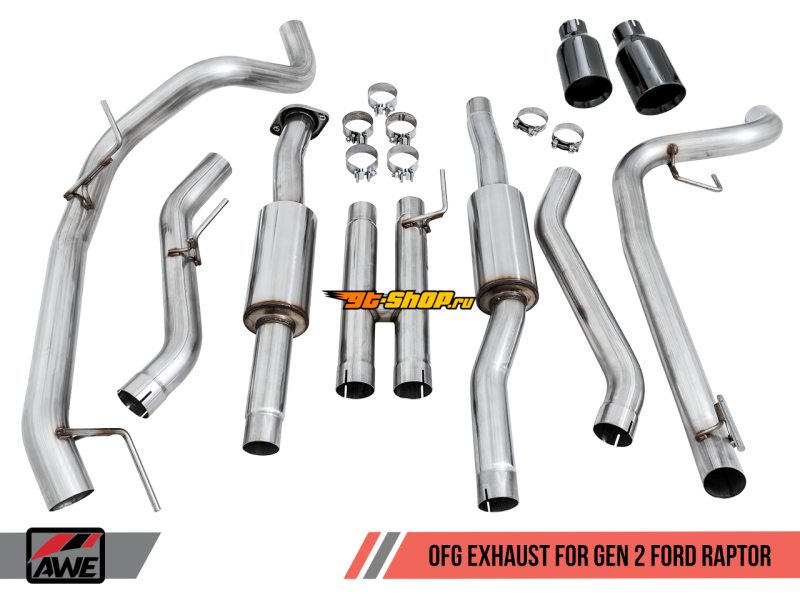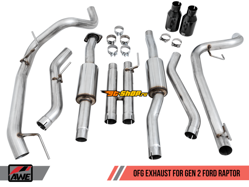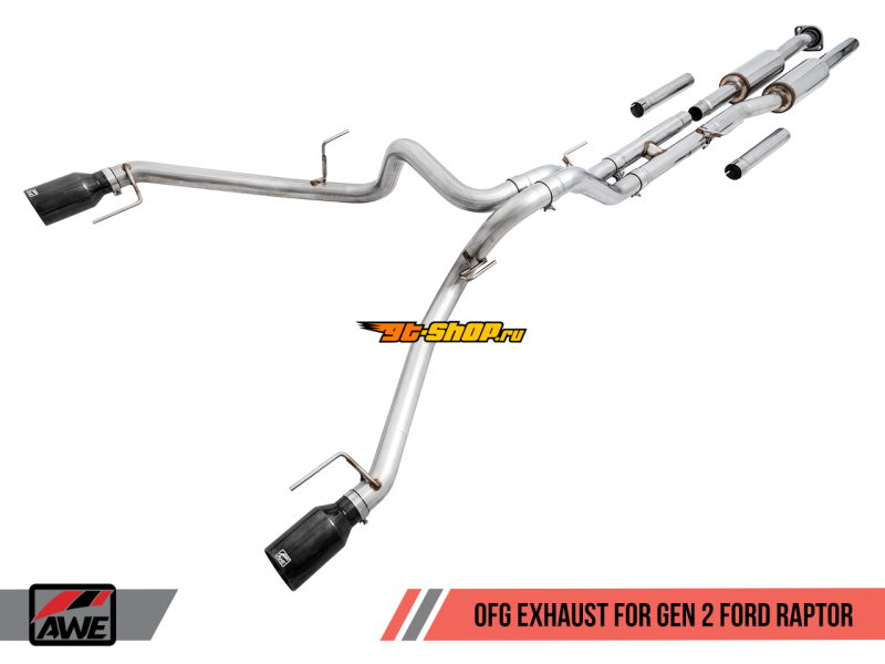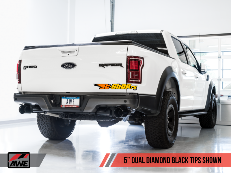 AWE Tuning 2017+ Ford Raptor 0 FG Performance Exhaust System - w/ Diamond Black Tips