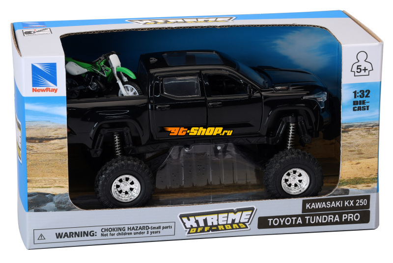 New Ray Toys Toyota Tundra Pro Lifted Truck Black with Kawasaki Dirt Bike 1:32 Scale