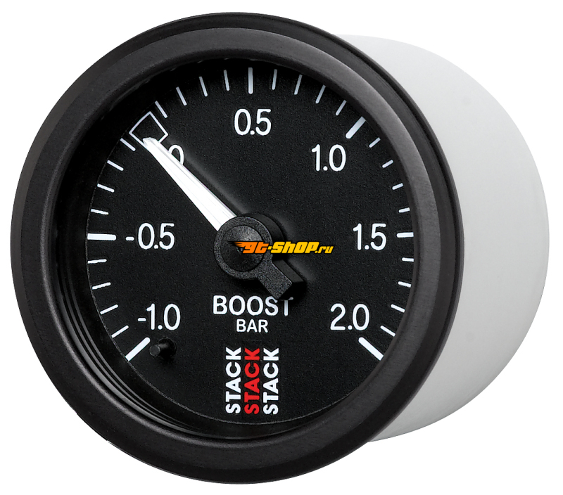 Autometer Stack 52mm -1 to +2 Bar T-Fitting 0.187in Barb (M) Mechanical Boost Pressure Gauge - Black