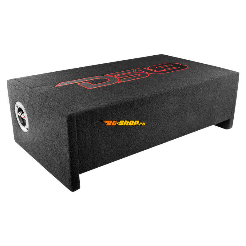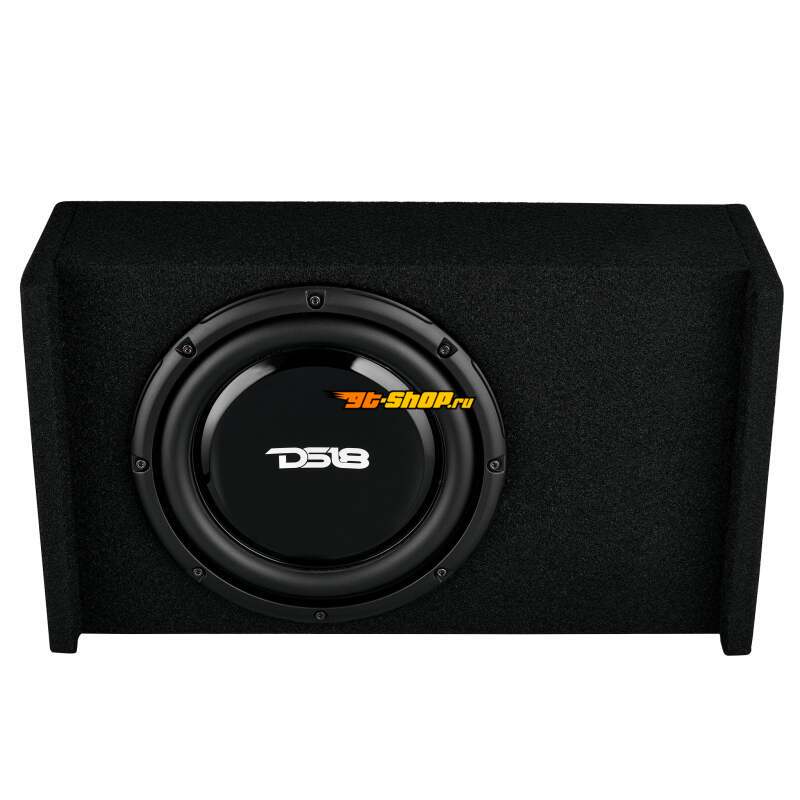DS18 Single 10in Shallow Subwoofer and Enclosure 300 Watts RMS Downfiring Sealed Black Carpet