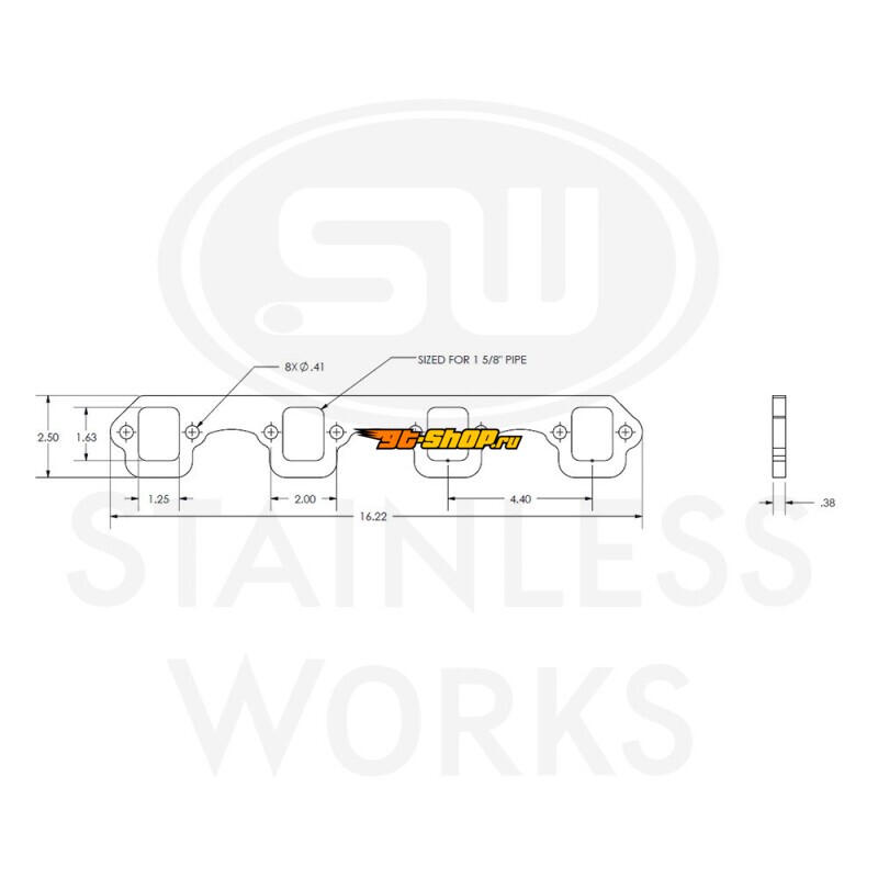 Stainless Works SBF Stock Rectangular Shaped Port 304SS Exhaust Flanges 1-5/8in Primaries (2in BP)