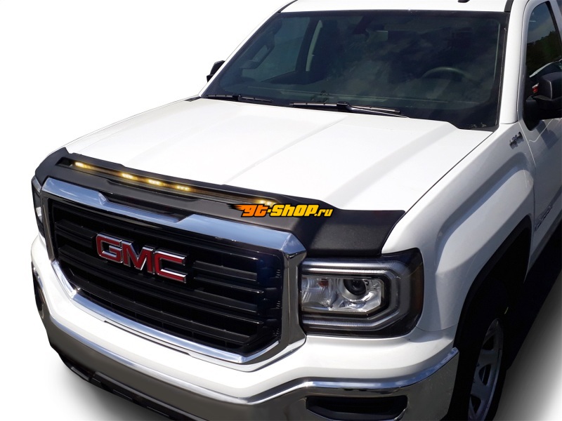 AVS 2014-2018 GMC Sierra 1500 Aeroskin Low Profile Hood Shield w/ Lights - Black
