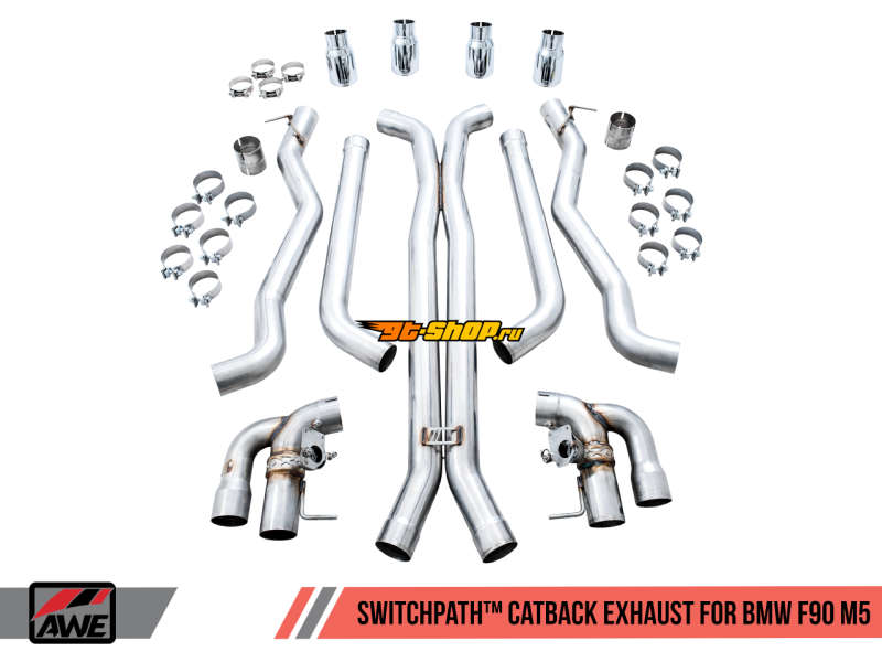 AWE Tuning 18-19 BMW M5 (F90) 4.4T AWD SwitchPath Cat-back Exhaust - Chrome Silver Tips