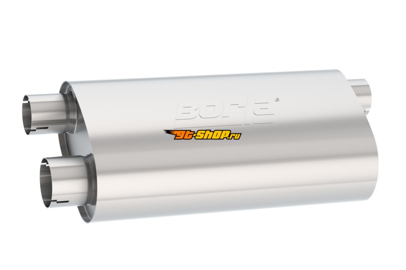 Borla Transverse Flow Notched Muffler - Oval Single Inlet/Dual Outlet 2.5in 19in x 10.5in x 5.5in
