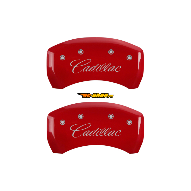 MGP 4 Caliper Covers Engraved Front & Rear Cursive/Cadillac Red Finish Silver Char 2016 Cadillac CT6