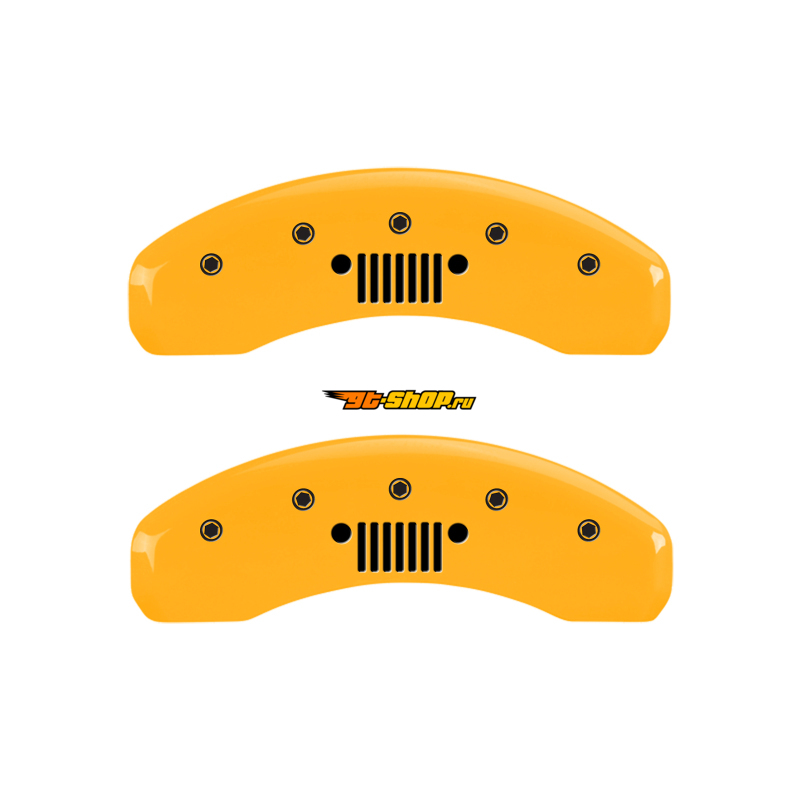 MGP 4 Caliper Covers Engraved Front Jeep Rear Grill Logo Yellow Finish Black Char 2004 Jeep Wrangler