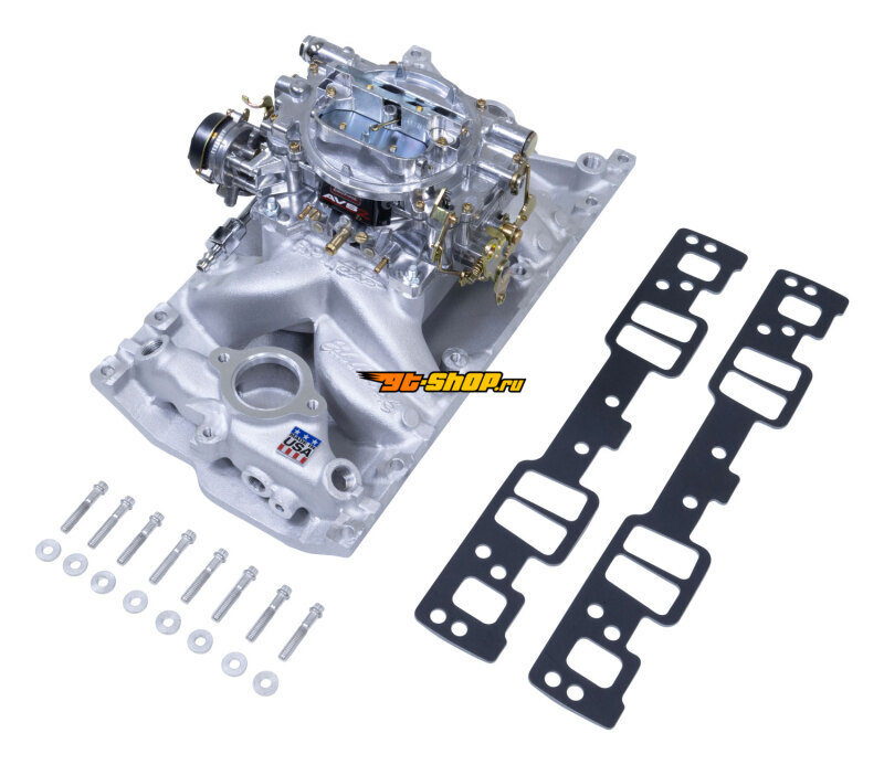 Edelbrock Manifold And Carb Kit Performer RPM Air Gap Small Block Chevrolet Vortec Natural Finish