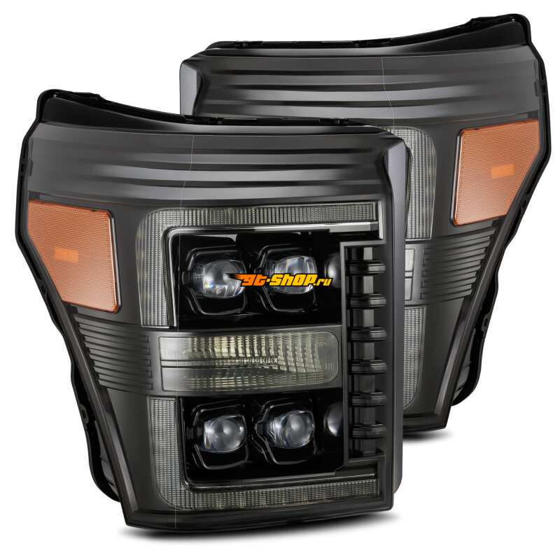 AlphaRex 11-16 Ford F-350 SD NOVA LED Proj Headlights Plank Style Alpha Blk w/Activ Light/Seq Signal