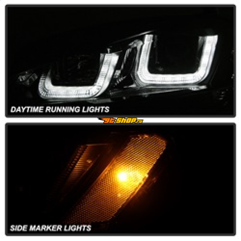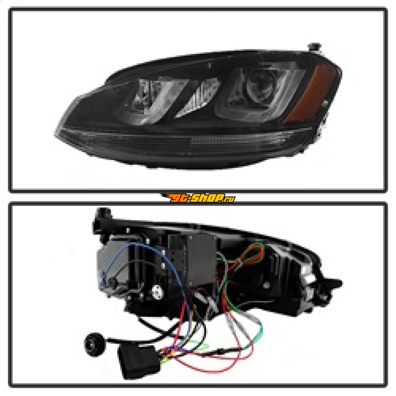 Spyder Volkswagen Golf VII 14-16 Projector Headlights DRL LED Blk Stripe Blk PRO-YD-VG15-BLK-DRL-BK