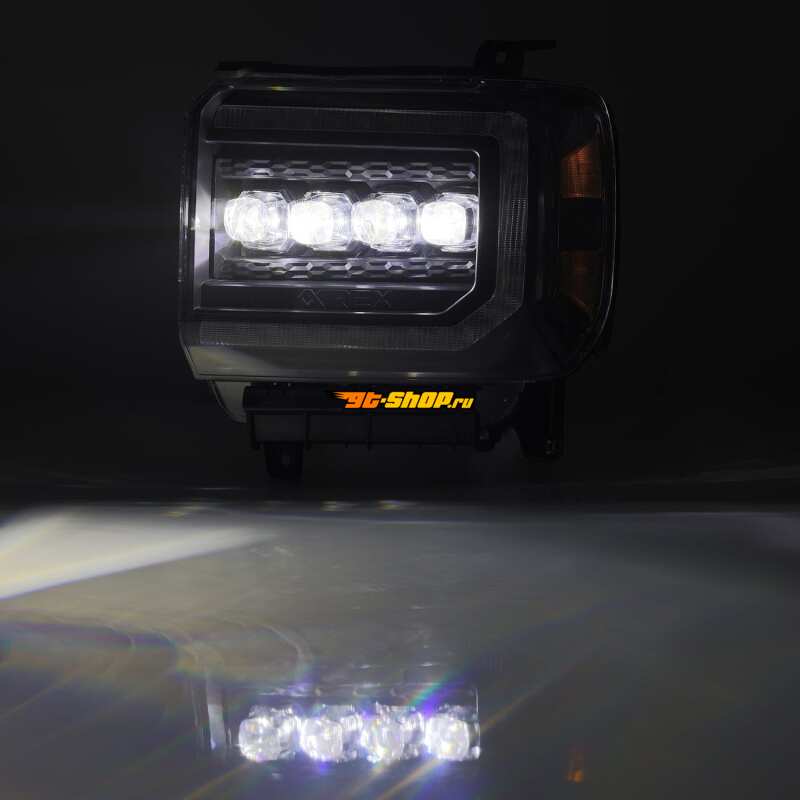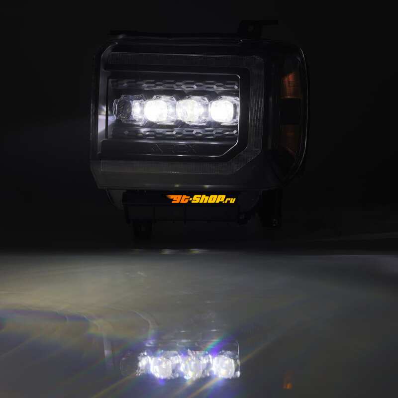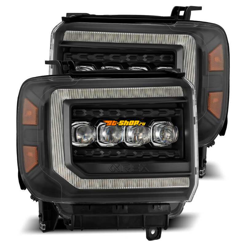 AlphaRex 14-18 GMC Sierra NOVA LED Proj Headlights Plank Style Black w/Activ Light/Seq Signal/DRL
