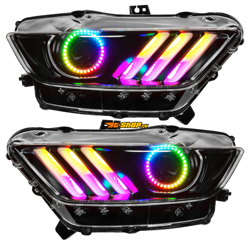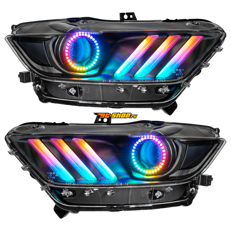 Oracle 15-17 Ford Mustang Dynamic RGB+A Pre-Assembled Headlights - Black Edition - SEE WARRANTY