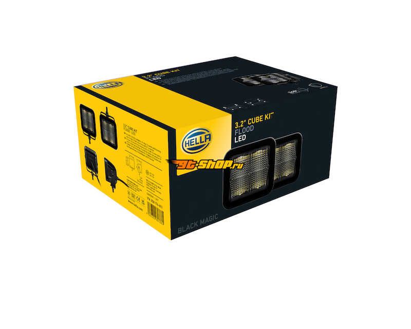 Hella Universal Black Magic 3.2in L.E.D. Cube Kit - Flood Beam (Short Range)