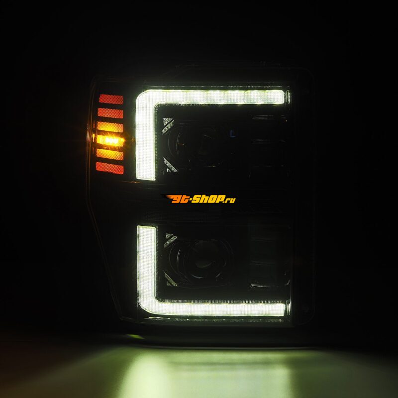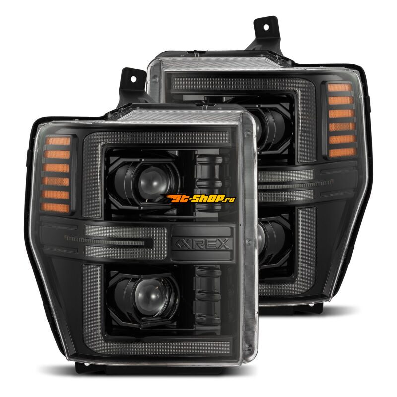AlphaRex 08-10 Ford F250-550 LUXX-Series LED Projector Headlights Alpha-Blk w/Activ Light/Seq Signal