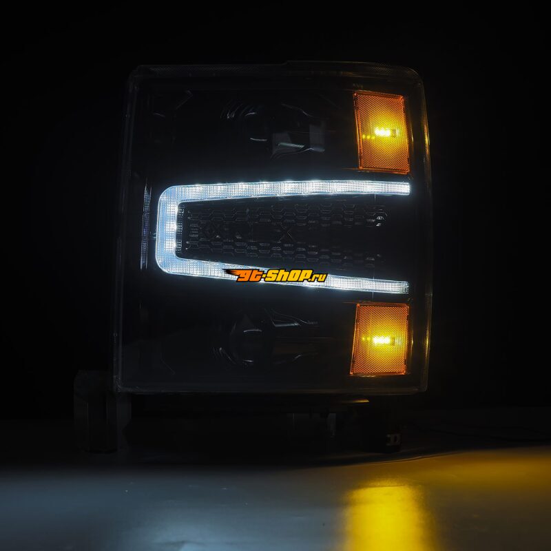 AlphaRex 04-15 Chevy 1500HD LUXX LED Proj Headlights Alpha-Black w/Seq Activation Light / Seq Signal