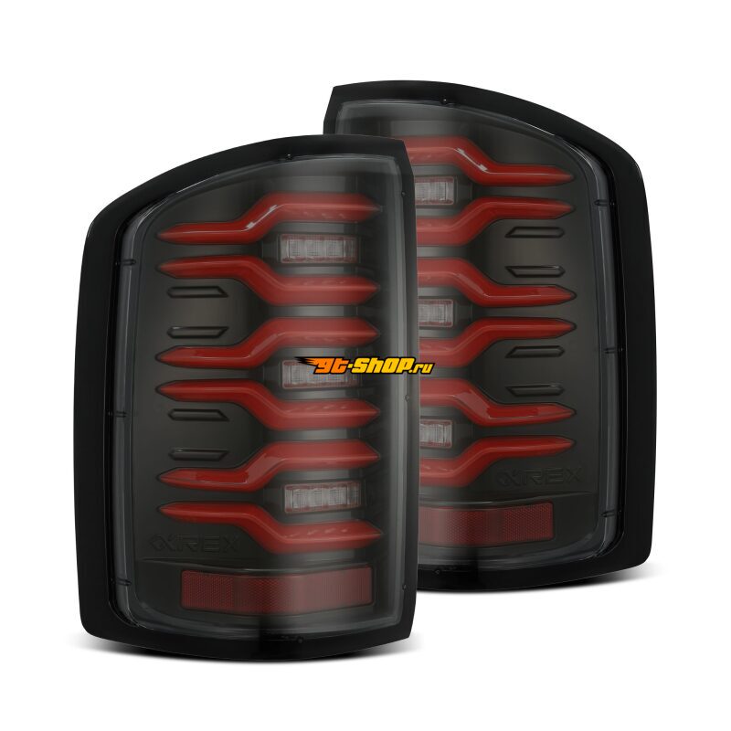 AlphaRex 14-18 GMC Sierra 1500/2500HD/3500HD LUXX-Series LED Tail Lights Blk/Red w/Actv Lgt Seq. Sig
