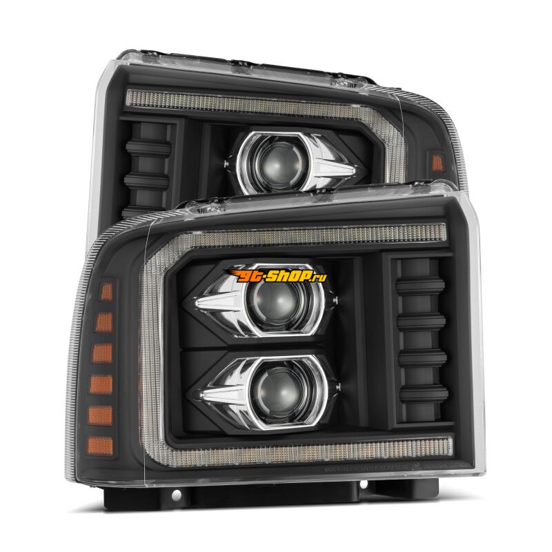 AlphaRex 05-07 Ford F250/350/450/550 Super Duty LUXX LED Proj HL Blk w/Actv Light & Seq Sig + SB DRL