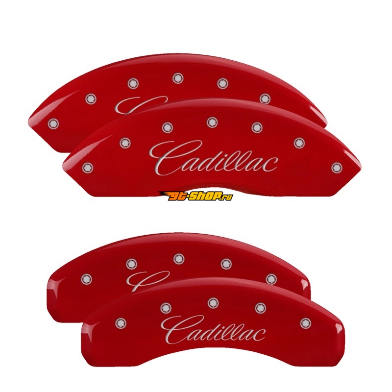 MGP 4 Caliper Covers Engraved Front & Rear Cursive/Cadillac Red finish silver ch