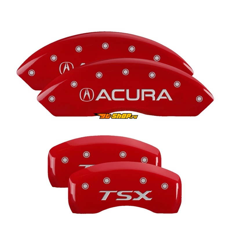 MGP 4 Caliper Covers Engraved Front Acura Engraved Rear TSX Red finish silver ch
