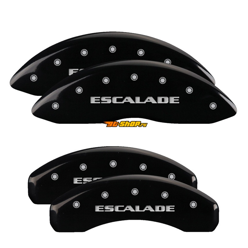 MGP 4 Caliper Covers Engraved Front & Rear Cursive/Cadillac Black finish silver ch