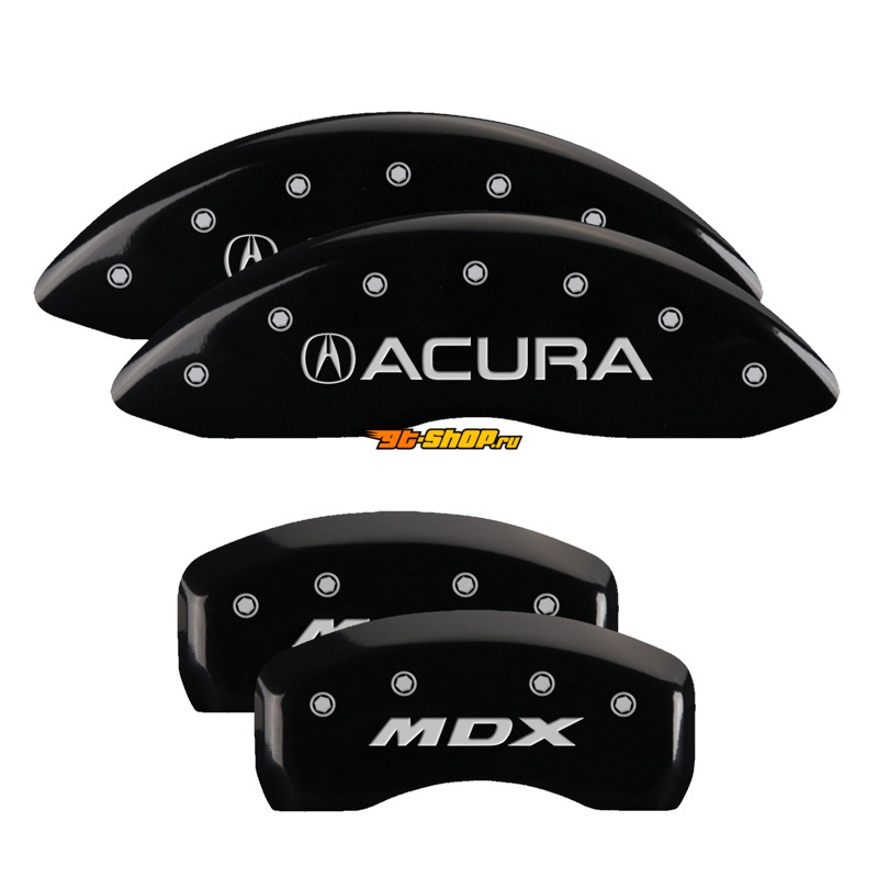 MGP 4 Caliper Covers Engraved Front Acura Engraved Rear MDX Black finish silver ch