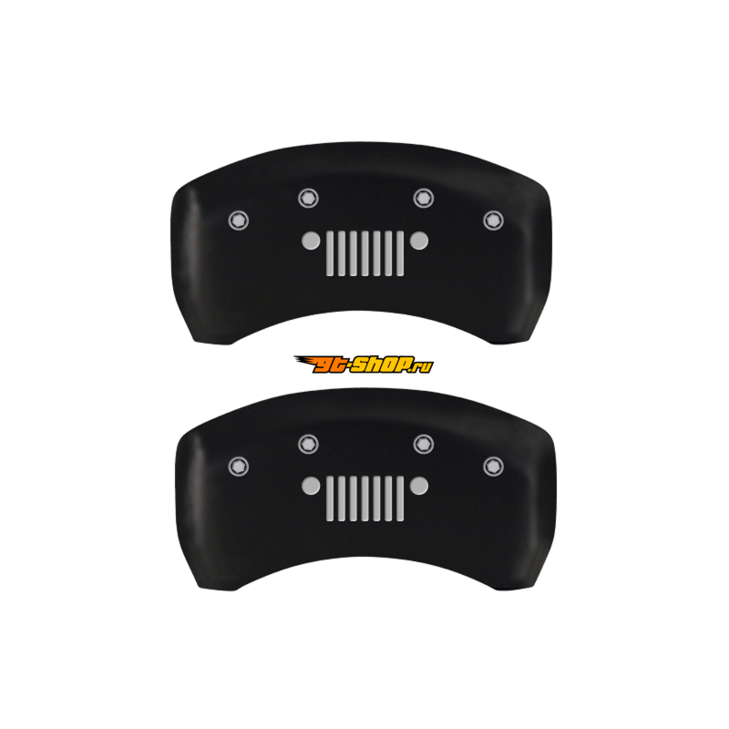 MGP 4 Caliper Covers Engraved Front JEEP Engraved Rear JEEP Grill logo Red finish silver ch