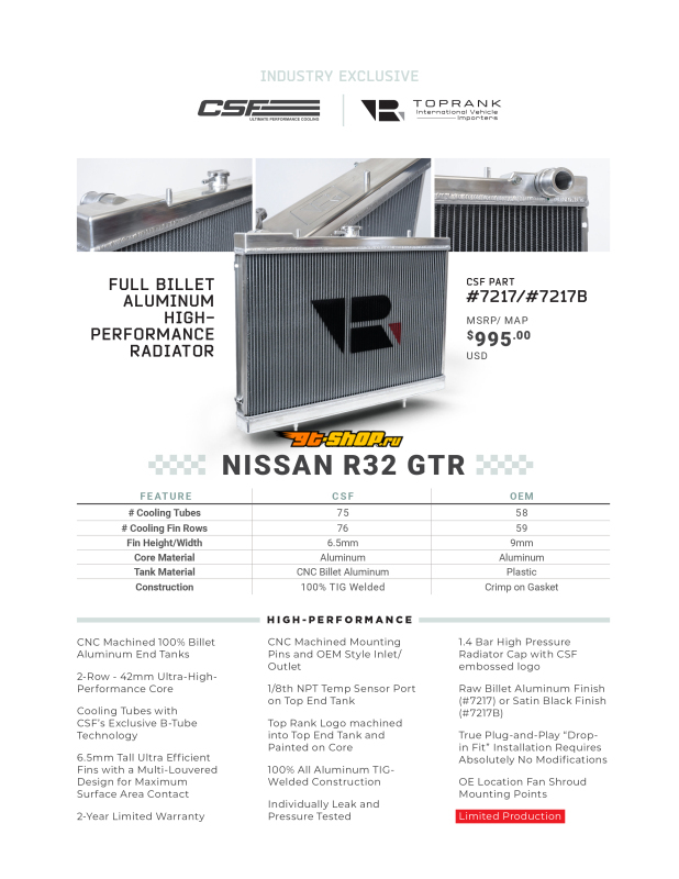 CSF R32 Nissan Skyline GT-R / GT-S Full Billet Aluminum High-Performance Radiator - Raw Finish