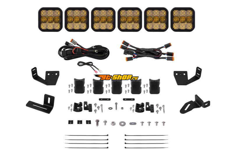 Diode Dynamics Prinsu/Sherpa Roof Racks- SS5 6-Pod CrossLink Mounting Kit Pro Yellow Combo
